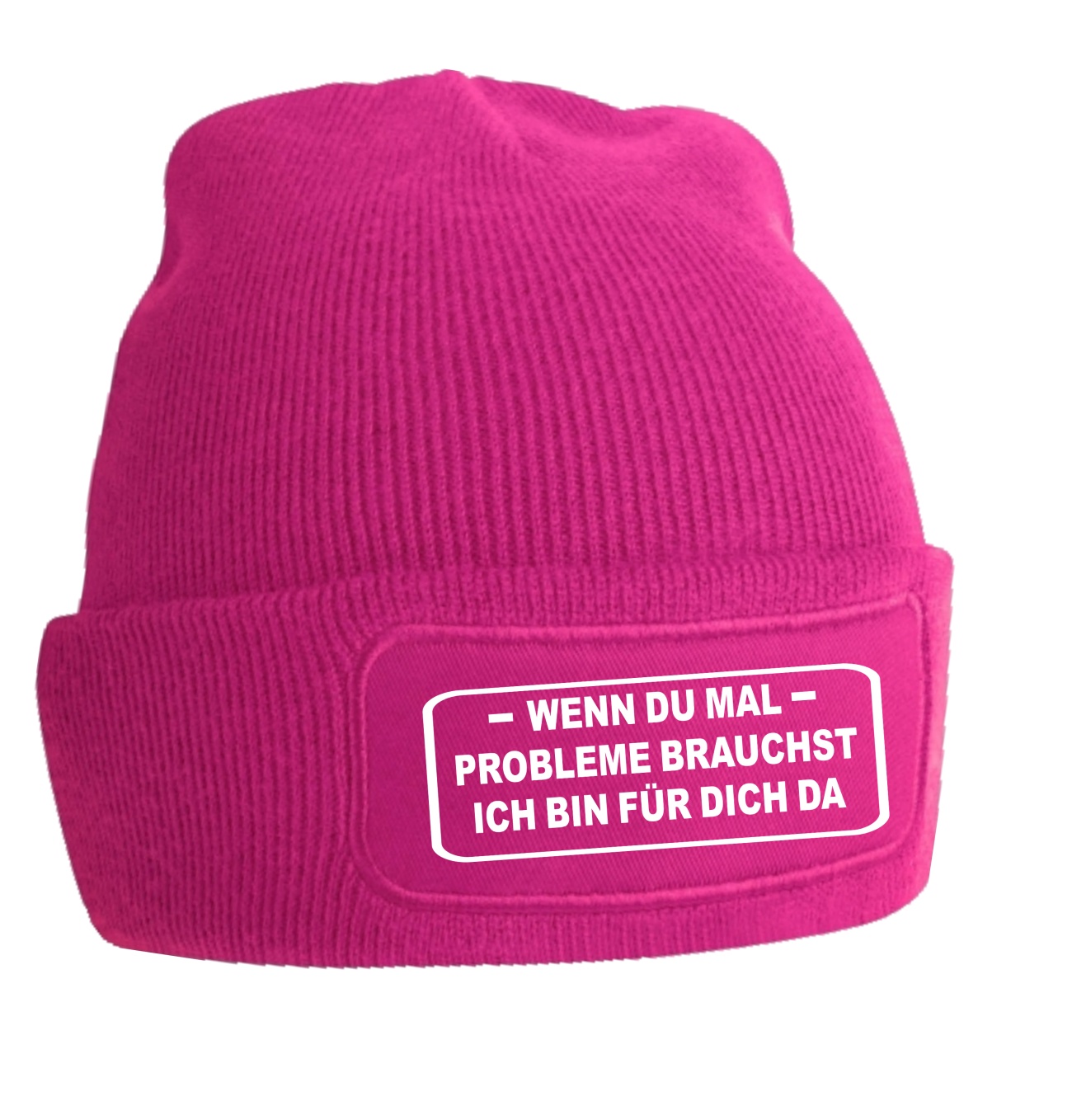 Doppellagige, gestrickte Wollmütze mit Motiv: Wenn du mal